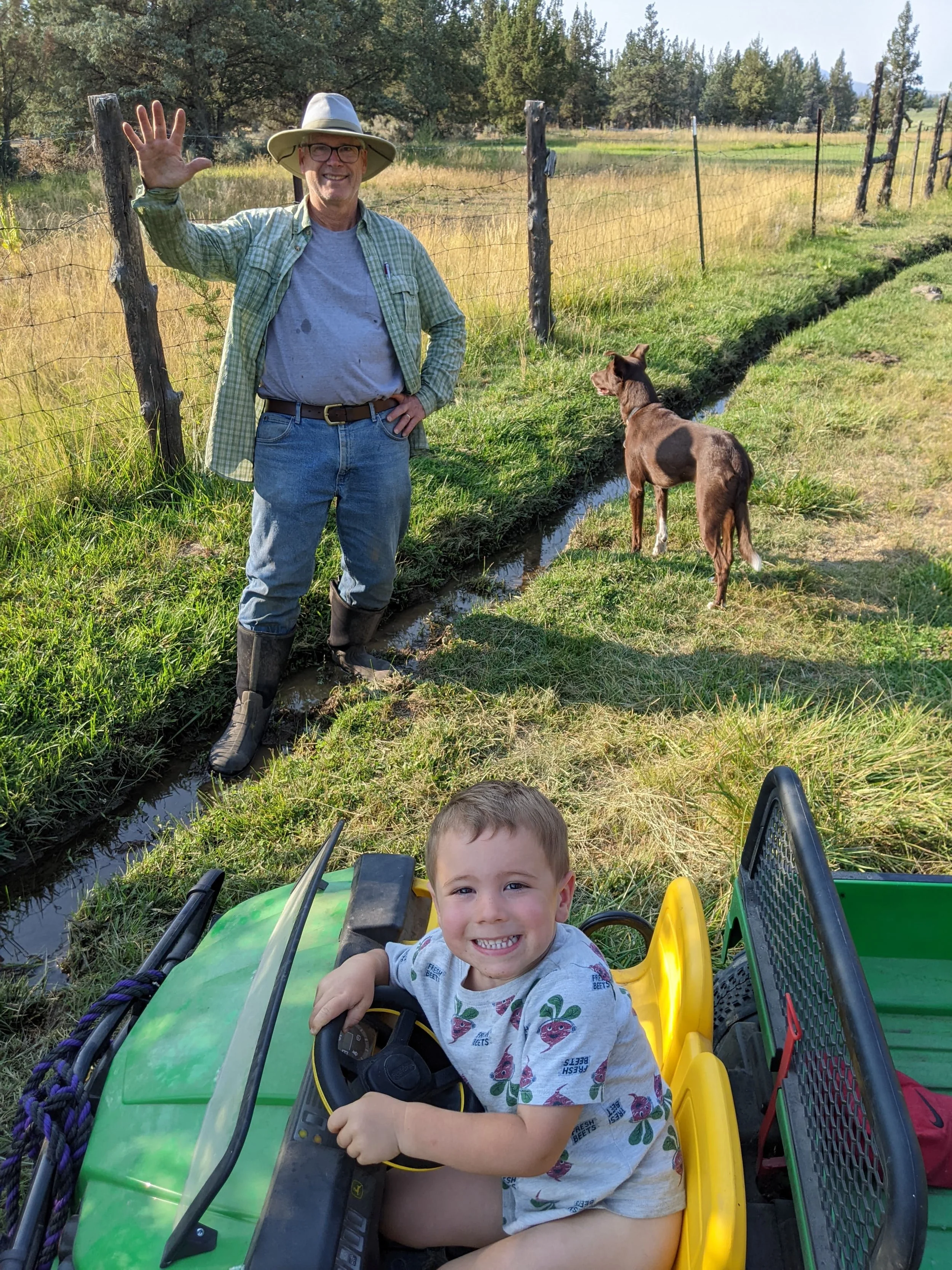 Clancy goes with ‘Poppy’ every opportunity he gets. They dig at ditches and zip around on the ATV, switching water, starting the pump to water from the pond, and limb trees. Poppy’s dedication to working around the ranch matches Clancy’s enthusiasm for working and irrigating; it has allowed for lots of little moments when Clancy is off with Poppy on adventures.